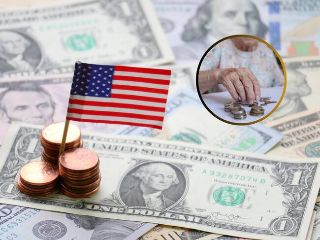 Dinero estadounidense y de fondo una persona anciana contando dinero. (Fotos vía Getty Images)