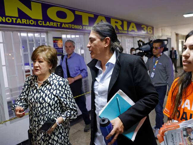 El candidato a la Alcaldía de Bogotá Gustavo Bolívar camina hoy, en la notaría 36, en Bogotá (Colombia). Bolívar llega a la Notaría número 36 del Círculo de Bogotá para firma un documento en el que se compromete a continuar con las obras del Metro de Bogotá. Foto: EFE/ Mauricio Dueñas Castañeda / Mauricio Duenas Castaneda (EFE)