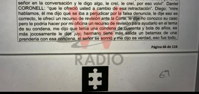 Más allá de cualquier interpretación de las pruebas, existe una evidencia en el proceso de la que no se ha hablado. Se trata de una declaración de viva voz en la que Cadena acepta que le hizo el ofrecimiento al testigo.