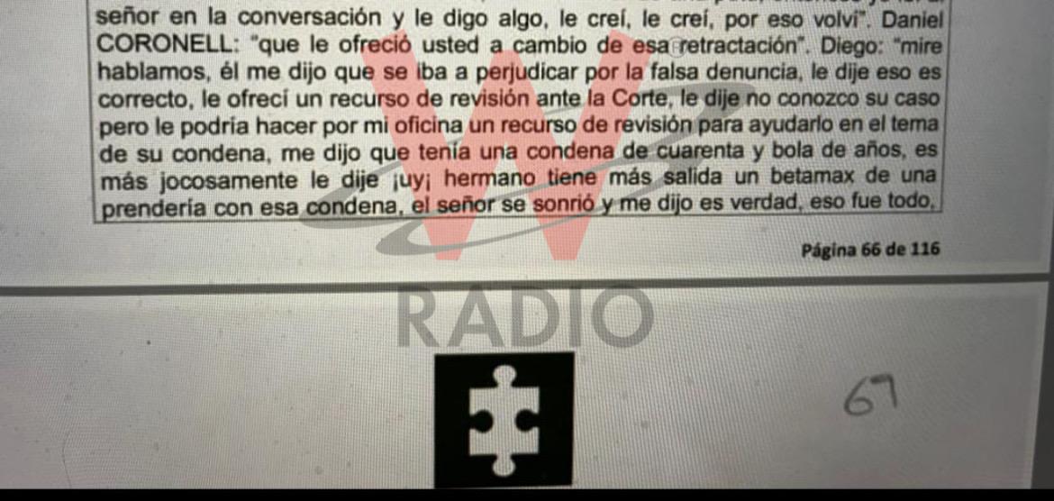 Cadena me respondió: “Mire hablamos. Él me dijo que se iba a perjudicar por la falsa denuncia, le dije eso es correcto. Le ofrecí un recurso de revisión para ayudarlo ante la Corte. Le dije no conozco su caso pero le podría hacer por mi oficina un recurso de revisión para ayudarlo en el tema de su condena”.