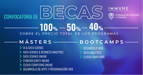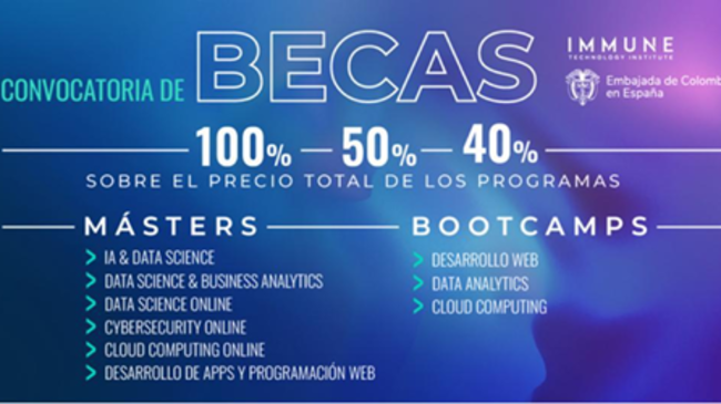 Con el objetivo de formar y promover el talento tecnológico colombiano residente en España, ambas instituciones lanzan esta convocatoria que cuenta con un total de 214 becas con diferentes coberturas, que van desde el 40 hasta el 100% del coste de las formaciones y busca fomentar la inserción profesional de estos perfiles, muy demandados en el mercado laboral.
