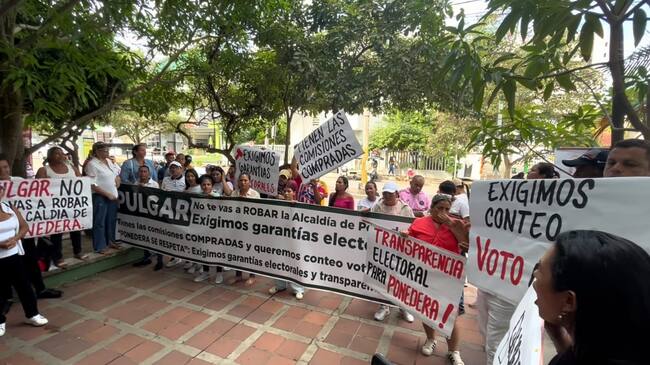 Miembros de la comunidad del municipio de Ponedera en el departamento del Atlántico protestaron en la sede de la Registraduría en el norte de Barranquilla.