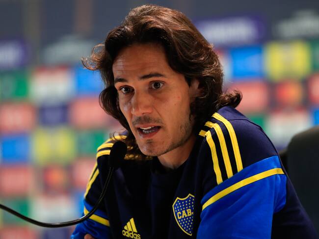 Edinson Cavani de Boca Juniors habla durante una rueda de prensa previo al partido de la final de la Copa Libertadores ante Fluminense, hoy en el Estadio Maracaná, en Río de Janeiro (Brasil). EFE/ André Coelho / andré Coelho (EFE)