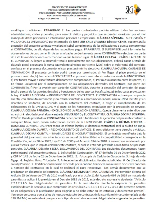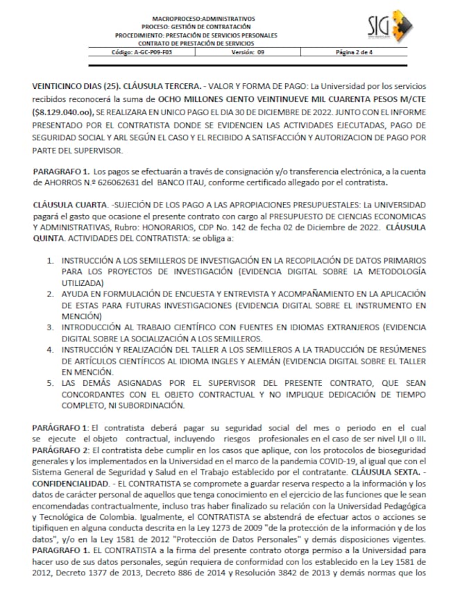 Este sería el contrato que habría celebrado Mikhail Krasnov el pasado 6 de diciembre de 2022 con la Universidad Pedagógica y Tecnológica de Colombia (Uptc).