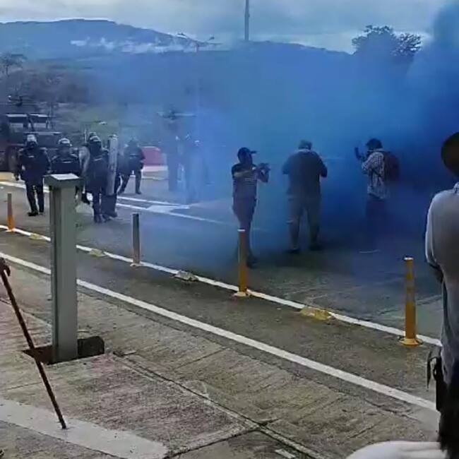 “No habemos sino 30 personas en este momento en la protesta pacífica desde hace algunos días. No hemos tocado a nadie, no hemos hecho nada malo, no hemos destruido nada y ya nos están lanzando chorros de agua con las tanquetas, nos están tirando bombas aturdidoras, nos están tirando bombas lacrimógenas. En este momento tenemos toda la comunidad afectada por esos gases y no entendemos por qué quieren garantizar los derechos de un privado pasar por encima de una comunidad que solo estaba reclamando sus derechos de forma pacífica”, aseguró una de las manifestantes.