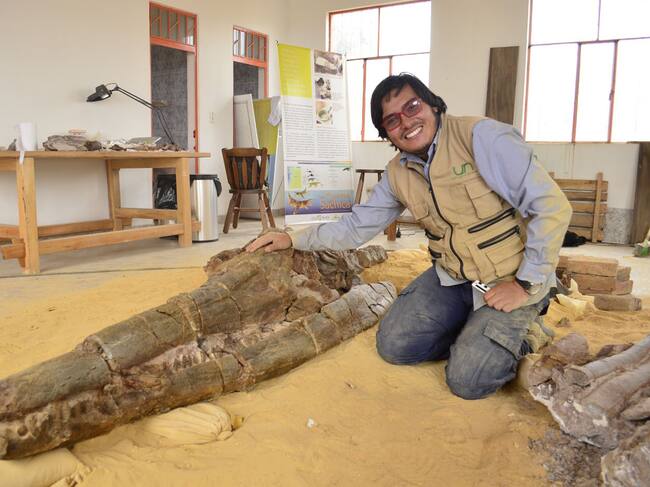 “Era una especie de un reptil marino, que este es un grupo que se llama los pliosaurios que, digamos, no tienen familiares actuales, pero lo más similar sería como unos mega cocodrilos que vivían en el mar en la época que existían los dinosaurios en lo que en ese entonces era el territorio de Colombia, y lo que encontramos eran diferentes especímenes que nos mostraban o que nos indicaba que su morfología está muy asociada a especies que se han encontrado en Rusia que son un poquito más antiguas, entonces lo que nos permitió este estudio es ver que los de Colombia tienen una relación con esos familiares cercanos que vivieron en Rusia”, indicó Benavidez