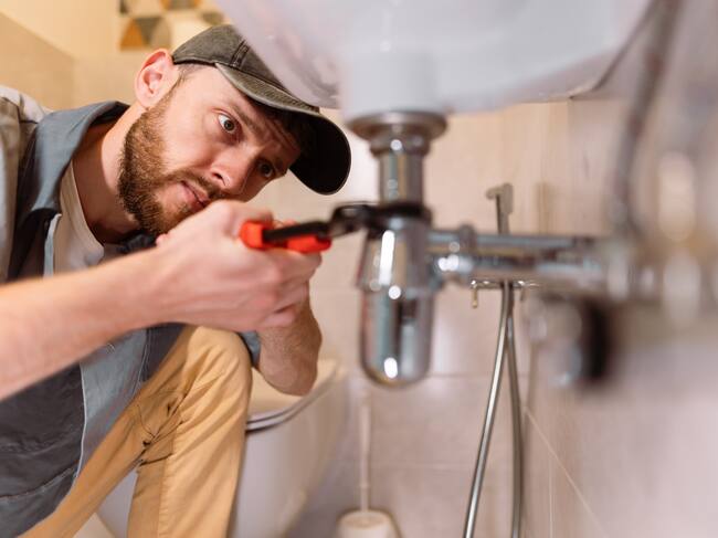 Hombre arreglando fuga del lavamanos dentro de una vivienda / Foto: GettyImages / Nazar Rybak