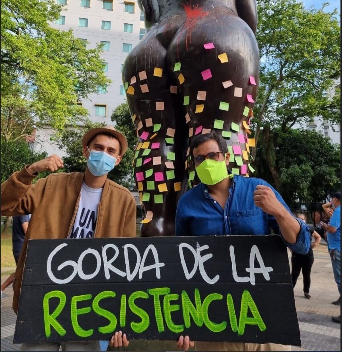 “Nosotros estamos tranquilos porque no hicimos nada ni ningún daño a un bien público. Esta denuncia fue presentada por un ciudadano que manifiesta que nosotros alentamos a la gente para que dañaran la estatua y como prueba, presenta una foto en la que estamos Carlos y yo al lado de la gorda de Botero”, expresó Lozano.