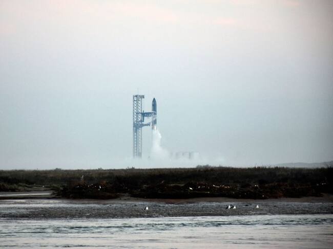 El despegue del Starship sobre su enorme propulsor Super Heavy, de 33 motores Raptor, se llevó a cabo en Boca Chica (Texas) alrededor de las 7:03 hora local (13:03 GMT).