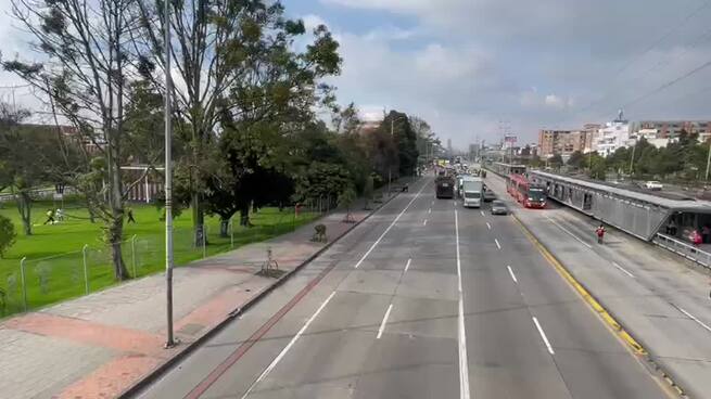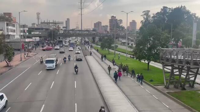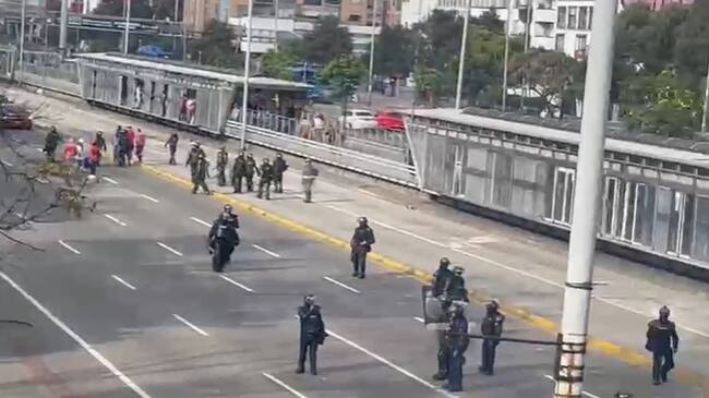 Por otro lado, TransMilenio señaló que debido a las protestas se suspendió el servicio de transporte en las estaciones Av. El Dorado, Universidad Nacional, El CampÍn, Movistar Arena y 7 de agosto; Cientos de usuarios del sistema caminan por la calzada mixta de la Av. NQS hacia el sur.