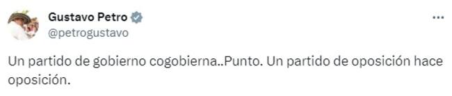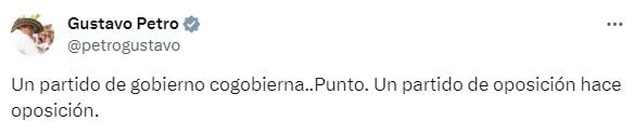 Un partido de Gobierno cogobierna, un partido de oposición hace oposición: Petro