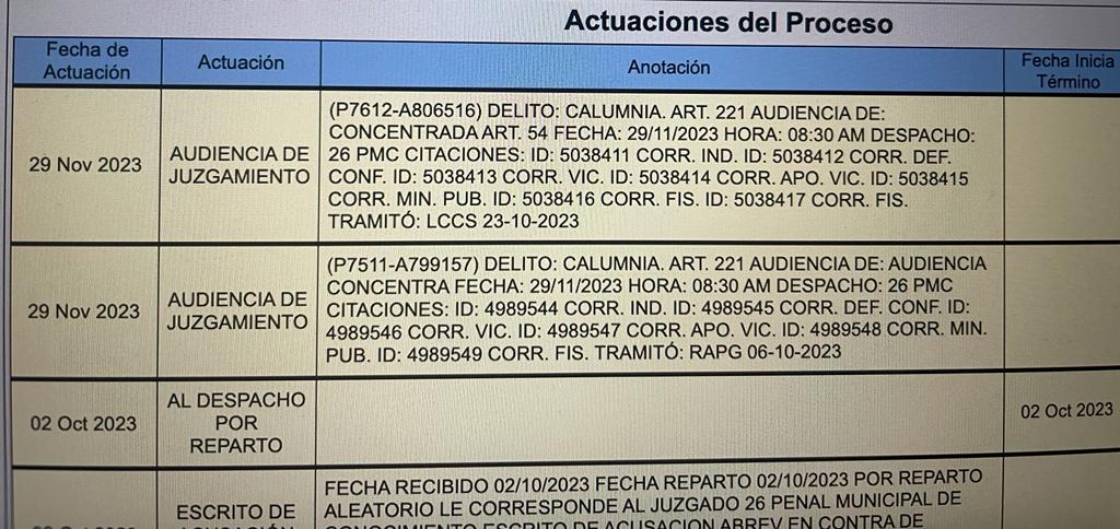 La diligencia se programó para el próximo miércoles 29 de noviembre a partir de las 8:30 de la mañana.