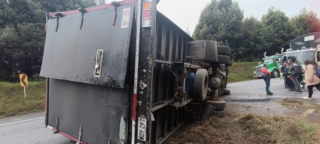 “Marcando la curva el vehículo se resbaló, perdí el control del mismo, terminé sobrepasando el separador y caí en el sentido contrario de la vía”, manifestó Jorge Caicedo, conductor del camión.