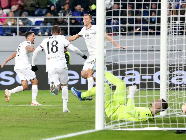 Tomas Soucek del West Ham y sus compañeros celebran gol en Europa League. Foto: EFE. / ANDREJ CUKIC (EFE)