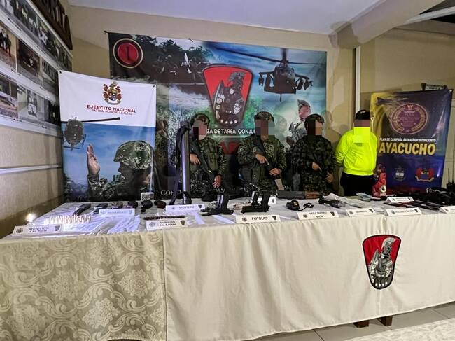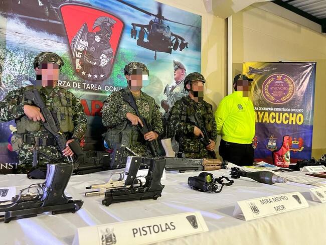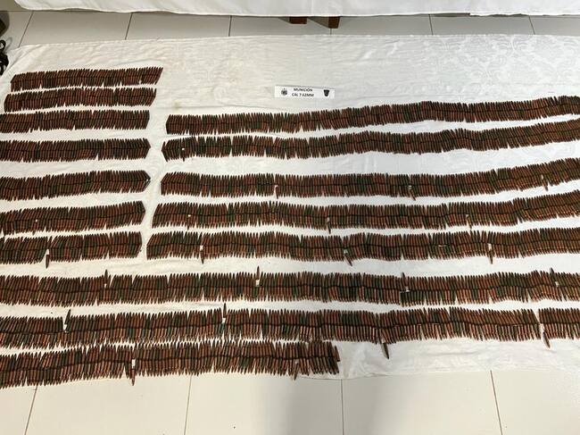 “Producto del esfuerzo operacional, las tropas del Ejército Nacional, la Armada y la Fuerza Aeroespacial, localizaron dos fusiles, cuatro pistolas, un mortero calibre 60mm, una granada de 60mm, más de 5000 unidades de munición de diferentes calibres, 21 radios de comunicaciones, una mira para fusil, proveedores y material de intendencia”, dicen las FF.MM.