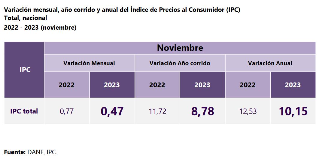 Inflación siguió su senda de descenso y en noviembre se ubicó en 10,15%, según el Dane