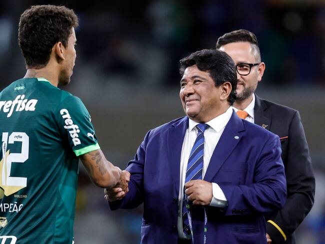BRA01. BELO HORIZONTE (BRASIL), 07/12/2023.- El presidente de la Confederación Brasileña de Fútbol (CBF), Ednaldo Rodrigues (derecha de traje azul) saluda durante un partido entre Palmeiras y Cruzeiro, el 6 de diciembre del 2023, en Belo Horizonte (Brasil). Un tribunal de Río de Janeiro destituyó este jueves al presidente de la Confederación Brasileña de Fútbol (CBF), Ednaldo Rodrigues, y en su lugar nombró a un interventor para continuar al frente del organismo. La corte anuló la elección de Rodrigues, realizada en 2022, por considerar que no fue válida una alteración de las reglas electorales que fue introducida poco antes de la votación, de acuerdo con medios locales. EFE/ Yuri Edmundo / Yuri Edmundo (EFE)