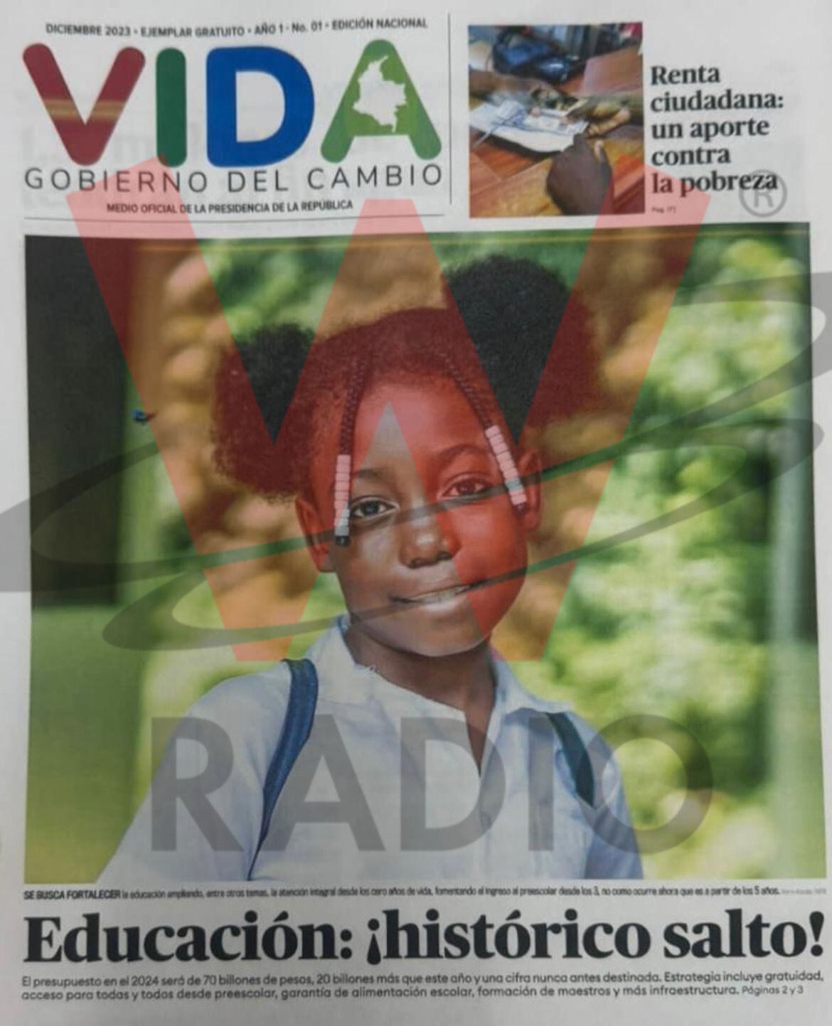 Sigue La W conoció en primicia la que sería la portada tentativa de la primera edición, que estará enfocada en el tema de la educación, apreciándose el logo oficial que es la palabra ‘VIDA’ y el titular principal “Educación: ¡histórico alto!”, una noticia basada en el presupuesto destinado a este rubro, además, en su encabezado también aparece una información relacionada al subsidio de Renta Ciudadana.