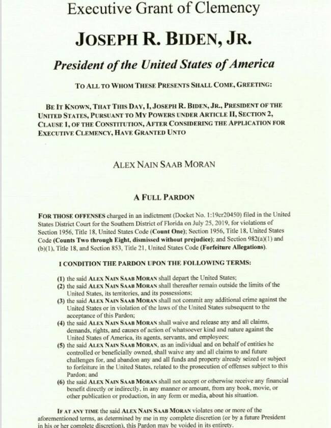 W Radio tuvo acceso a un revelador documento emitido por el Gobierno del presidente Joe Biden. Se trata del documento conocido como orden ejecutiva de clemencia en el caso de Alex Saab.
