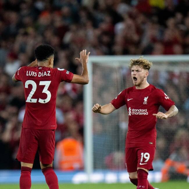 Luis Díaz (izquierda) y Harvey Elliot (derecha) jugadores del Liverpool. Foto: Getty Images. / Sebastian Frej/MB Media
