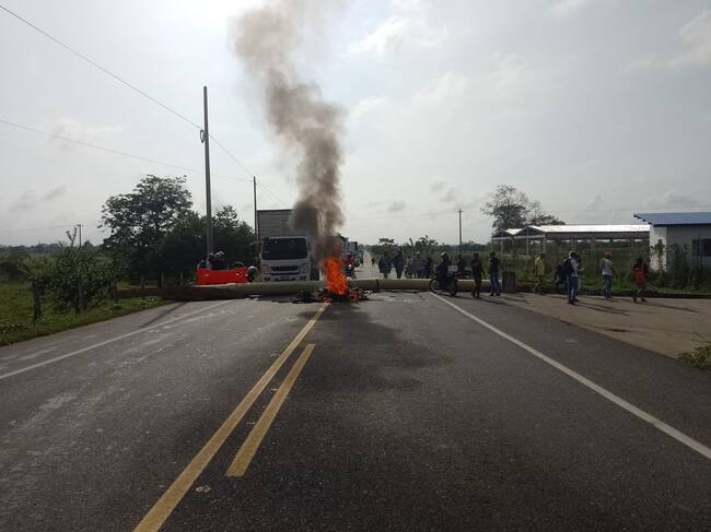Momentos en que era bloqueada la Troncal de Occidente. Foto: cortesía (suministrada en La W).