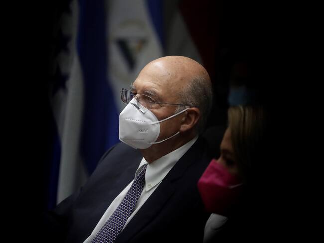 AME4095. SAN SALVADOR (EL SALVADOR), 23/12/2023.- Fotografía de archivo fechada el 21 de julio de 2021 del expresidente de El Salvador Alfredo Cristiani mientras se presenta ante una comisión especial de la Asamblea Legislativa que investiga posibles casos de corrupción de expresidentes, en San Salvador (El Salvador). Una corte de instrucción de El Salvador ordenó la detención provisional del expresidente Alfredo Cristiani (1989-1994) y un grupo de exdiputados de la Asamblea Legislativa por supuestamente encubrir a los autores de la masacre de 1.000 campesinos en El Mozote en 1981, durante la guerra civil (1980-1992), según dieron a conocer medios locales este sábado. EFE/ Rodrigo Sura ARCHIVO / Rodrigo Sura (EFE)