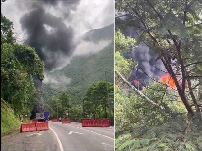 El incendio lo causó el “volcamiento de un vehículo de carga con mercancías peligrosas”, según informó Coviandina.