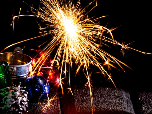 Bengala quemándose detrás de bolas de cristal por celebración de Año Nuevo (Getty Images) / MaYcaL