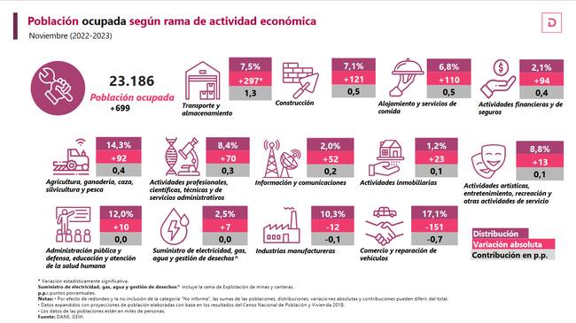 Las ramas de la actividad económica que más jalonaron la creación de empleo en noviembre fueron: