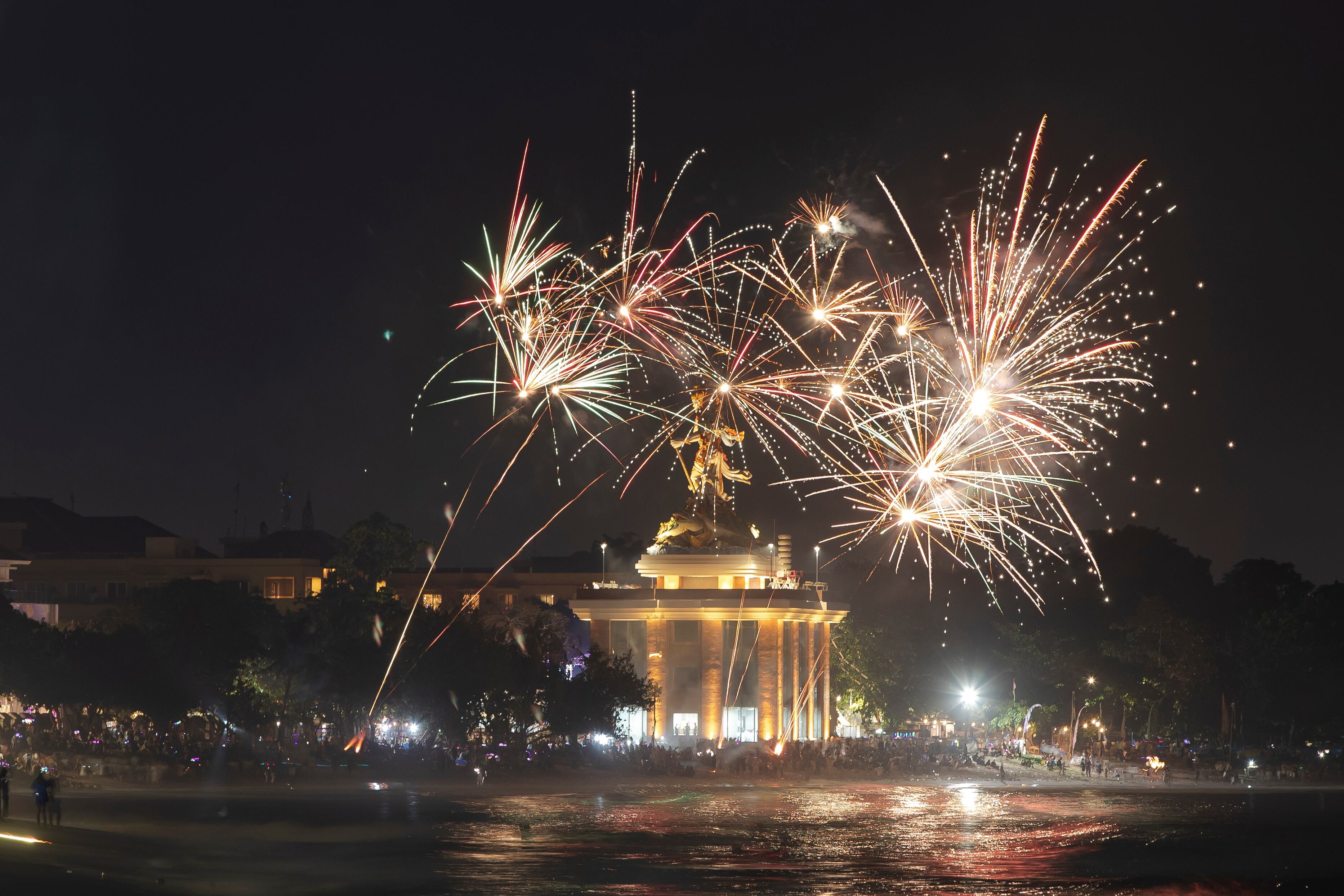 Denpasar (Indonesia), 31/12/2023.- Fireworks explode after midnight over Kuta beach during New Year celebrations in Bali, Indonesia, 01 January 2024. EFE/EPA/MADE NAGI / MADE NAGI