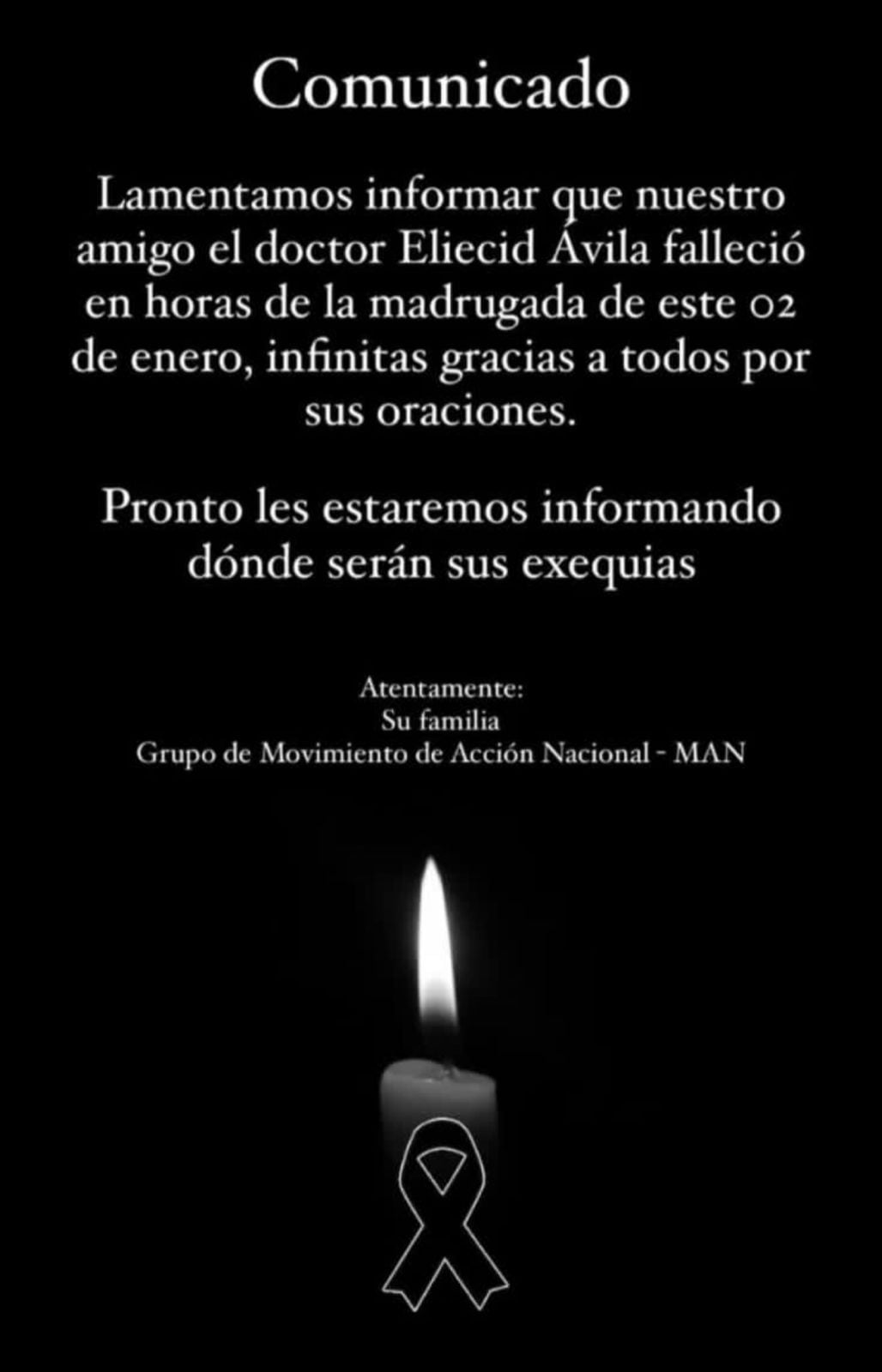 Así lo confirmó la familia del concejal Eliecid Ávila a través de un mensaje en redes sociales.