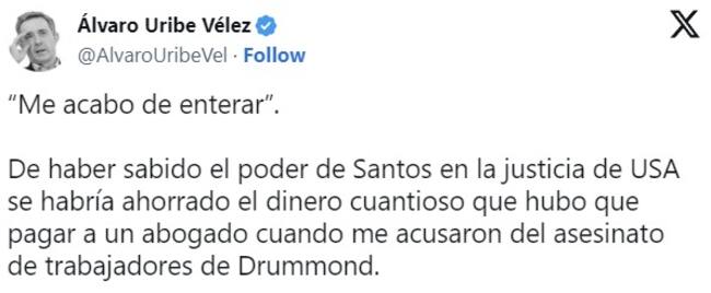 Luego de que el expresidente Juan Manuel Santos confirmara que durante su gobierno gestionó inmunidad diplomática al también exmandatario Álvaro Uribe por algunos requerimientos que se podrían producir en su contra ante la justicia de Estados Unidos, el jefe del Centro Democrático reaccionó.