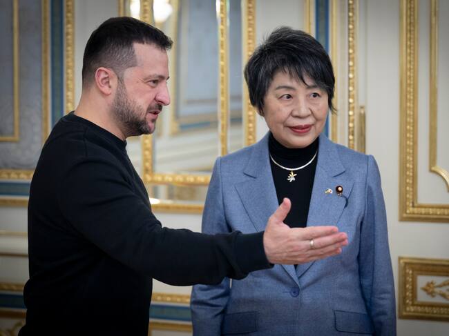 Volodymyr Zelensky (izquierda) y Yoko Kamikawa (R). EFE/EPA/PRESIDENTIAL PRESS SERVICE / PRESIDENTIAL PRESS SERVICE / HAN (EFE)
