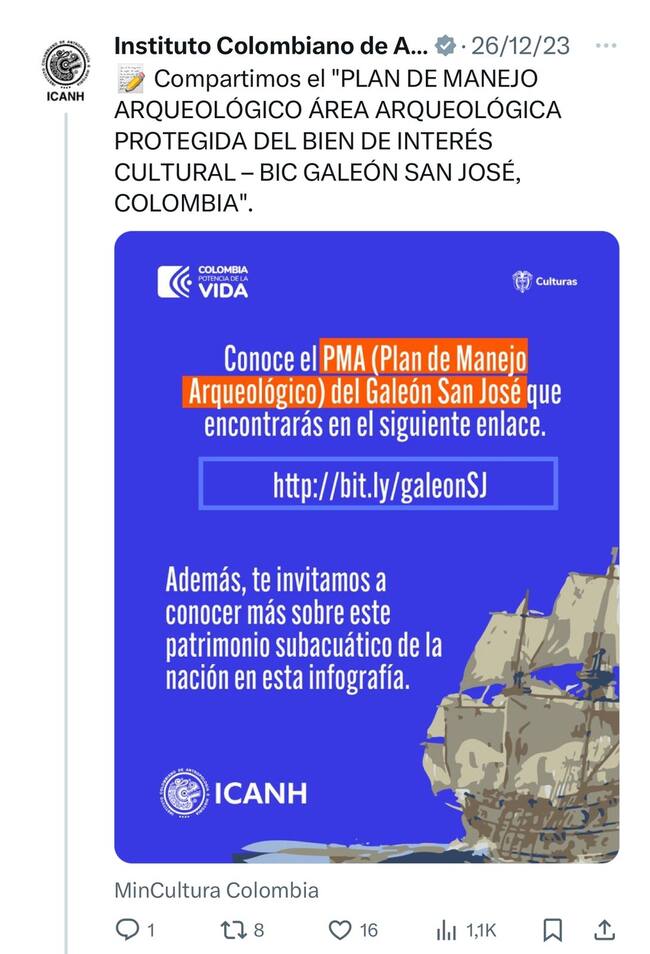Sin embargo, debido a que esta embarcación fue declarada un bien de interés cultural, su extracción, por norma, no se puede hacer si no se presenta un Plan de Manejo Arqueológico.