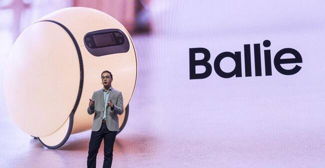 Samsung, además, presentó a Ballie, una aspiradora con micrófonos y cámaras que comunica a los usuarios por sus teléfonos inteligentes lo qué está pasando en sus hogares.