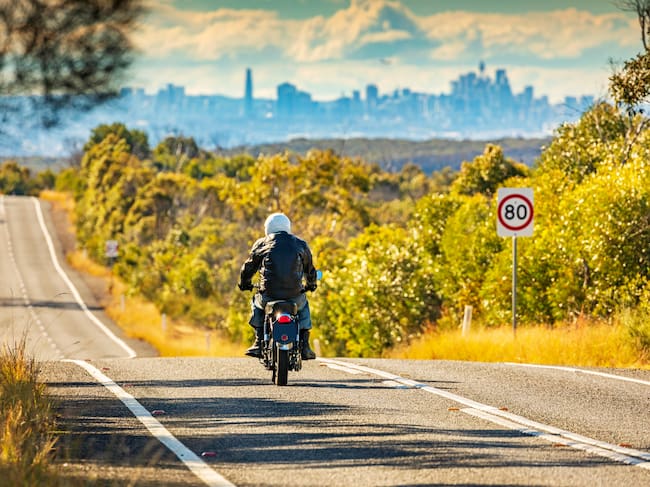 Motociclista conduciendo por carretera próximo a subir una cuesta / Foto: GettyImages / Andrew Merry