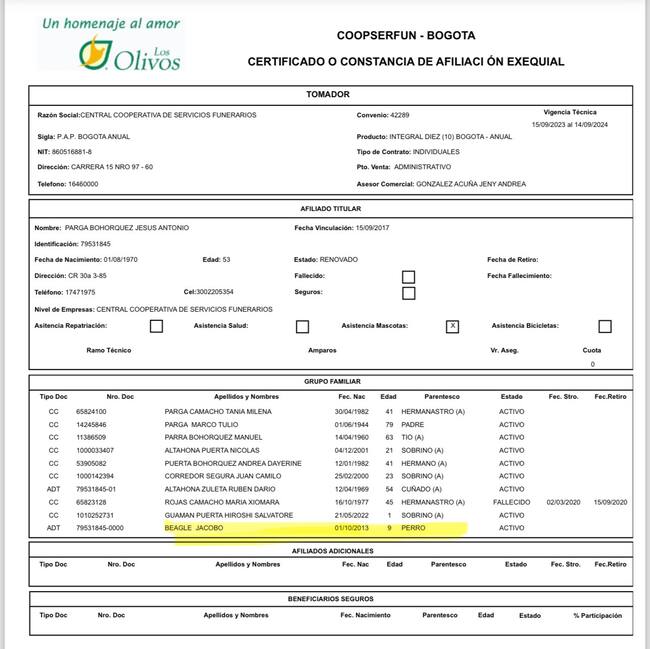 Praga relató que, a pesar de haber incluido a su perro Jacobo en un plan exequial ofrecido por Funeraria Los Olivos, a la hora de reclamar las cenizas de su mascota le dijeron que debía pagar $400 mil pesos adicionales. Le explicaron que el plan que él había pagado solo incluía cremación, más no entrega de las cenizas.