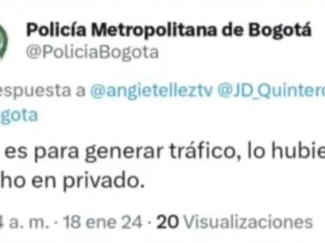 Un hecho inesperado en toda esta historia llegó con un trino de la cuenta oficial de la Policía Metropolitana de Bogotá, donde, al contrario de apoyar la situación, acusaba una supuesta mala conducta de las denunciantes.
