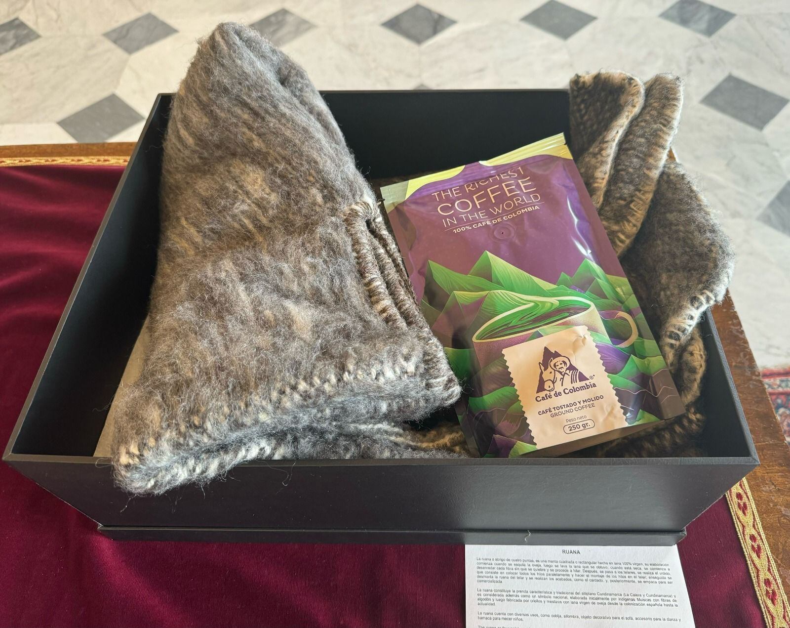 Desde Colombia, por parte del presidente Petro se regaló al papa Francisco una ruana boyacense tejida en el municipio de Nobsa y un café producido en Colombia.