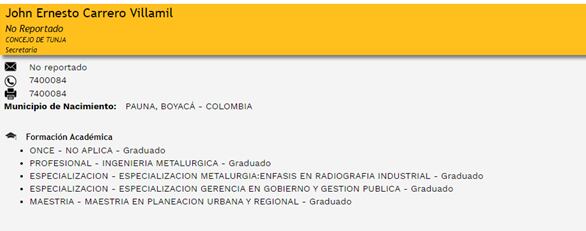Resaltan algunos perfiles como del ingeniero Agrónomo, Giovany Rafael Viasus, quien tiene una especialización y una maestría en Gestión Ambiental. Ha sido secretario de despacho, asesor en Boyacá sobre temas ambientales y también ha trabajado con la Federación Nacional de Cafeteros.