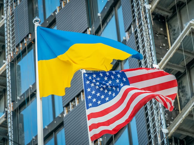 Banderas de Ucrania y Estados Unidos. Foto: Getty Images / Yaraslau Mikheyeu