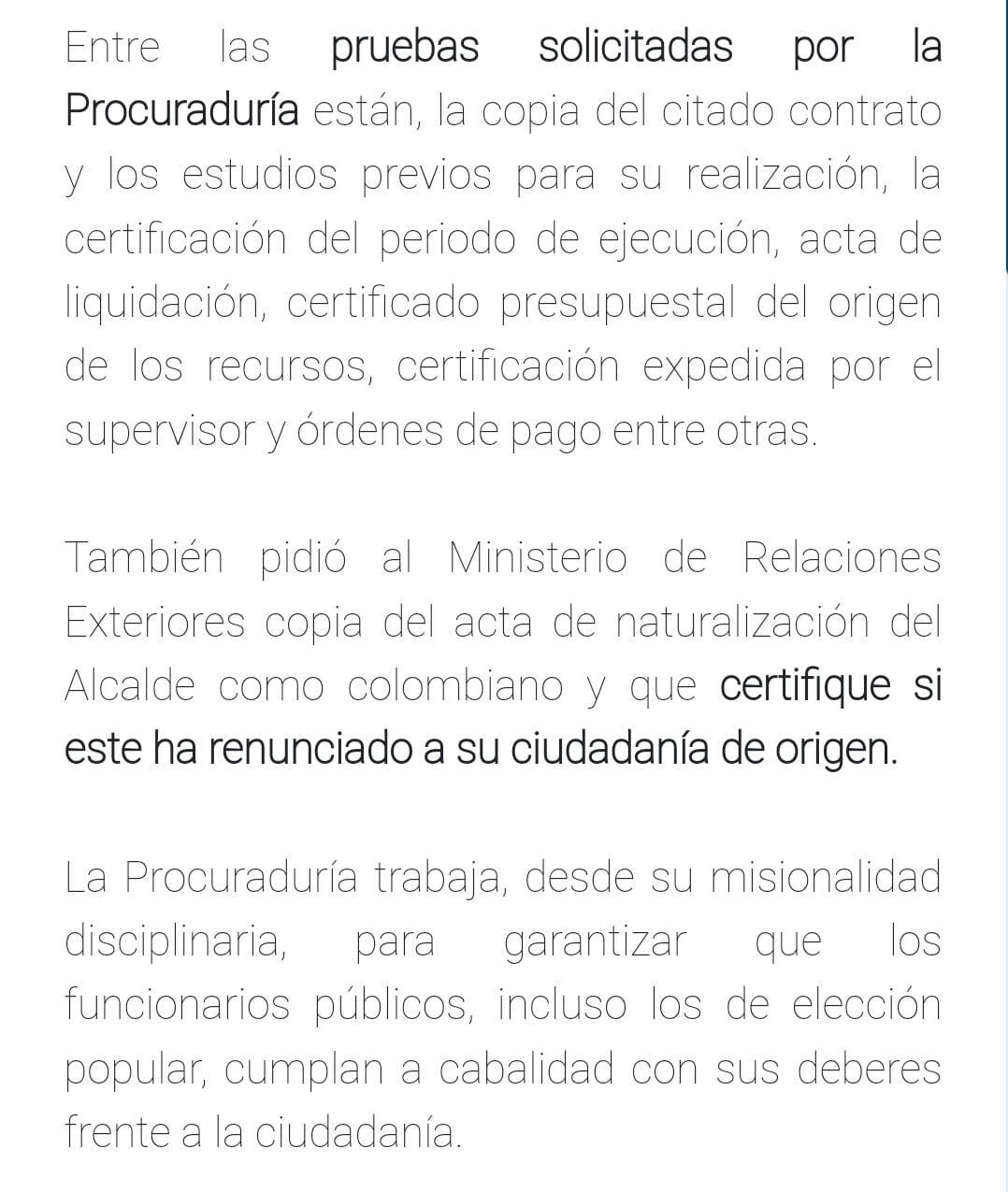 El alcalde de Tunja, Mikhail Krasnov, respondió a la indagación previa de la Procuraduría