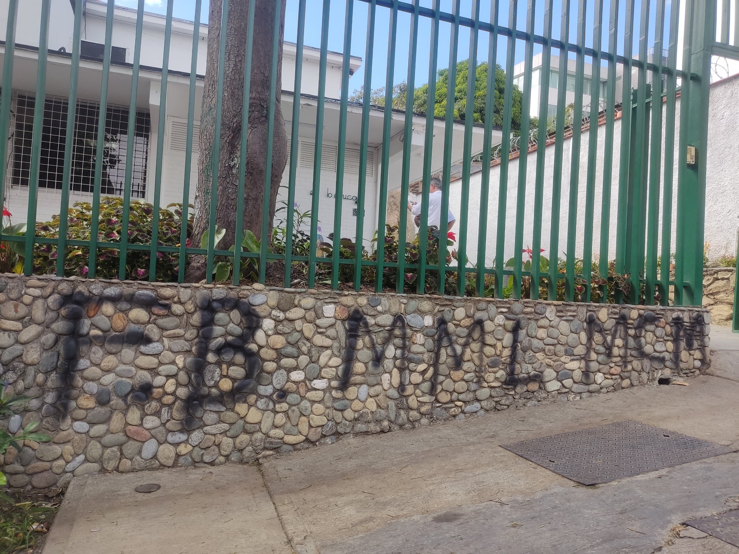 Sede de Vente Venezuela, organización de María Corina Machado, con grafitis alusivos a consignas del oficialismo. Foto: Gabriela González.