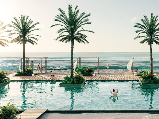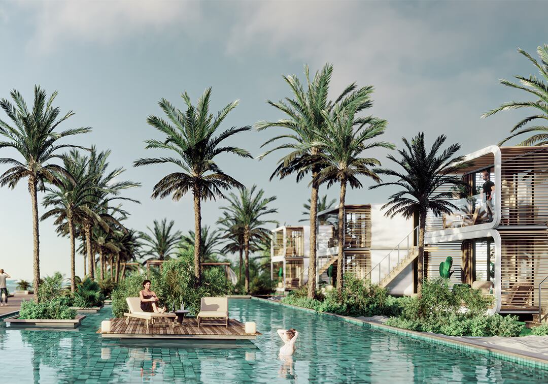 Este primer condominio de glampings amoblados de lujo, con amenidades 5 estrellas como piscina para adultos y niños con borde infinito, club de deportes náuticos, islas con solariums, volleyball playa, coworking, restaurante, maletero, recepción, coin laundry, food trucks, estaciones de fogatas, camas balinesas, jacuzzis, club de playa y acceso directo al mar, amenidades sostenibles como energía solar en alumbrado público y zonas comunes, reciclaje de basuras, reciclaje de aguas, carro eléctrico para desplazamiento interno, entre otras.