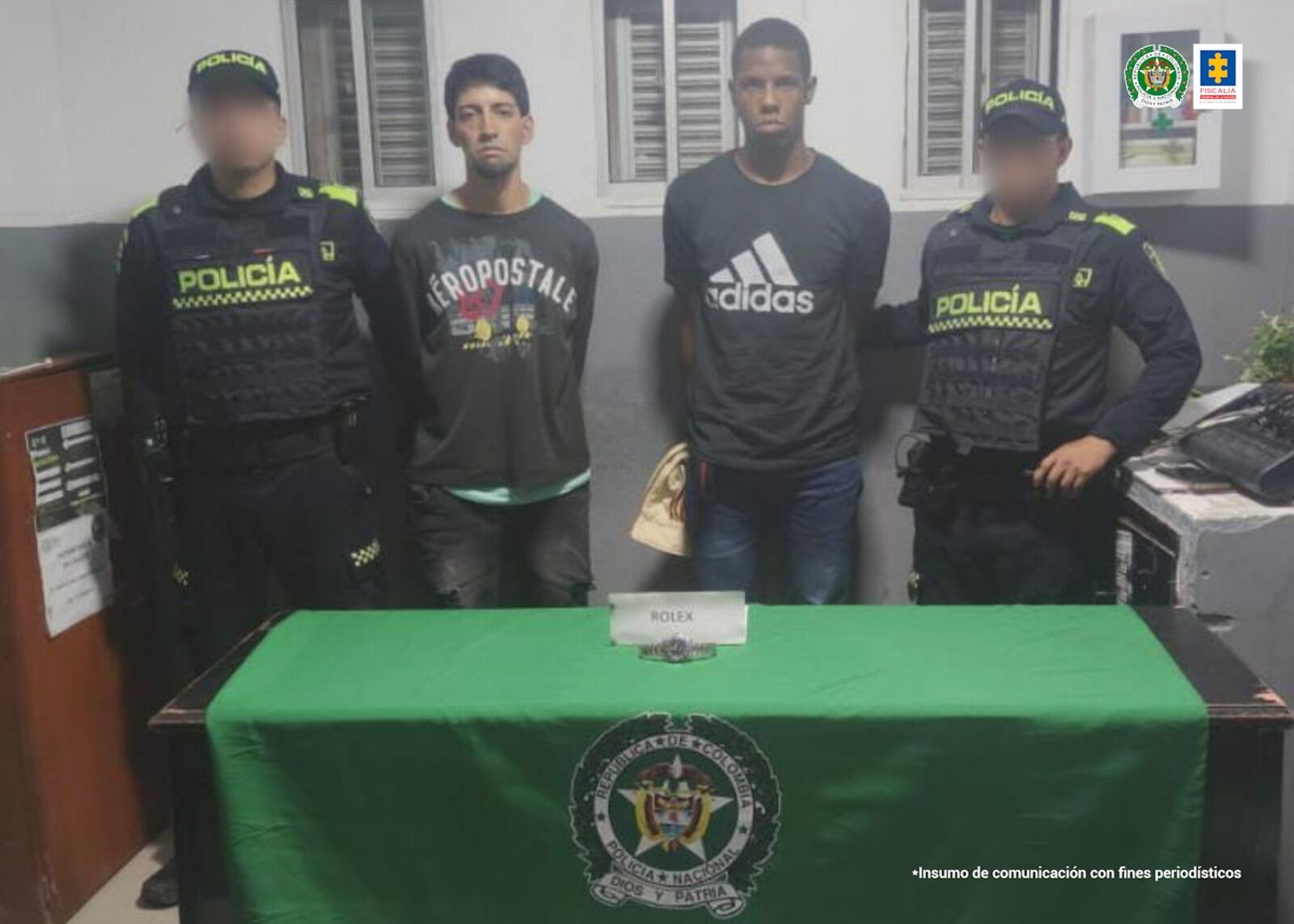 La Policía Nacional que fue alertada del atraco, en una persecución logró capturar a los hoy implicados, a quienes les encontraron en su poder, el reloj que tiene un valor aproximado de $50 millones”, puntualizó.