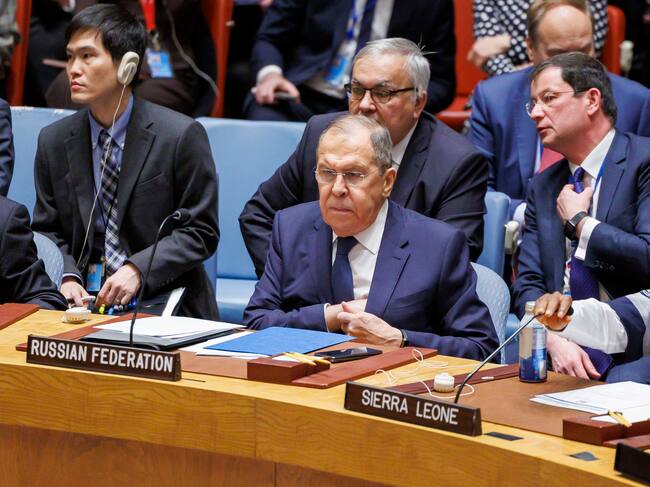 New York (United States), 23/01/2024.- Russian Foreign Minister Sergey Lavrov attends a United Nations Security Council meeting on the situation in the Middle East including the Palestinian question, at the United Nations Headquarters in New York, USA, 23 January 2024. (Rusia, Nueva York) EFE/EPA/SARAH YENESEL / SARAH YENESEL (EFE)