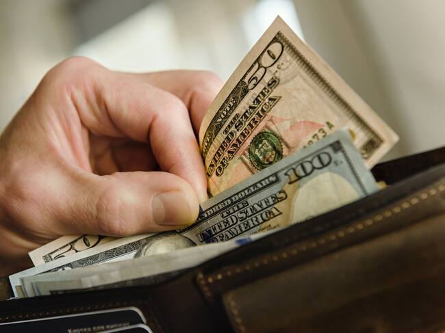 Hombre sacando de su billetera dólares estadounidenses (Getty Images) / yunava1