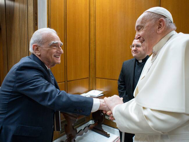 Vatican City (Vatican City State (holy See)), 31/01/2024.- A handout picture provided by the Vatican Media shows Pope Francis (R) and US director Martin Scorsese (L) shaking hands in Vatican City, 31 January 2024. (Papa) EFE/EPA/VATICAN MEDIA HANDOUT HANDOUT EDITORIAL USE ONLY/NO SALES HANDOUT EDITORIAL USE ONLY/NO SALES / VATICAN MEDIA HANDOUT