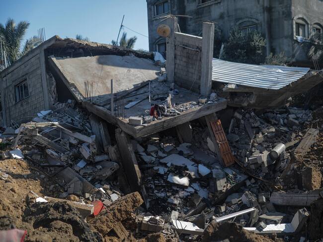 Deir Al Balah (---), 03/02/2024.- The destroyed house of the Abu Naseir family following an early Israeli air strike in Deir Al Balah in the southern Gaza Strip, 03 February 2024. Three members of the Abu Naseir family were killed, nine injured, while five remain buried in the rubble, according to the Palestinian Health Ministry. More than 27,000 Palestinians and over 1,300 Israelis have been killed, according to the Palestinian Health Ministry and the Israel Defense Forces (IDF), since Hamas militants launched an attack against Israel from the Gaza Strip on 07 October 2023, and the Israeli operations in Gaza and the West Bank which followed it. EFE/EPA/MOHAMMED SABER / MOHAMMED SABER (EFE)