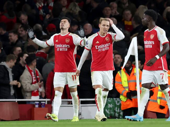 El capitán del Arsenal Martin Odegaard encontró un hueco en la defensa y pasó el balón a Kai Havertz, que falló ante Alisson Becker, pero Bukayo Saka estuvo atento para inaugurar el marcador (minuto 14).